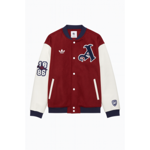Бомбер выполнен в классическом стиле с фирменной символикой Арсенала и adidas. Основной бордовый цвет гармонично сочетается с белыми рукавами, что придаёт вещи стильный контраст. На груди расположен крупный буквеный логотип «A» и фирменный знак adidas Originals, на рукаве — вышивка «1886», напоминающая о годе основания клуба. Манжеты, воротник и низ выполнены в тёмно-синем цвете с эластичной отделкой для комфортной посадки. Модель отличается качественными материалами, удобной посадкой и современным дизайном, который подойдёт как для повседневной носки, так и для поддержки любимого клуба в сезоне 2025/26.