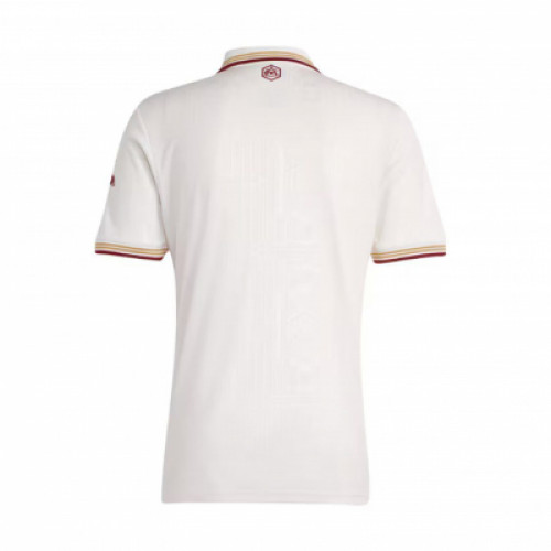 Арсенал футболка резервная 2025/26 Футболка выполнена в светлом тоне с бордовыми акцентами, создающими утончённый и стильный образ. Контрастные детали на воротнике-поло и манжетах придают модели классический характер, а герб «Арсенала» и логотип спонсора на груди подчёркивают клубную принадлежность. Материал — лёгкая и дышащая спортивная ткань, которая комфортна в носке и хорошо сохраняет форму. Продуманный крой делает футболку удобной как для повседневного использования, так и для активного отдыха. Эта модель подойдёт болельщикам, которые ценят элегантность и хотят выделяться, поддерживая «Арсенал» в любой ситуации.