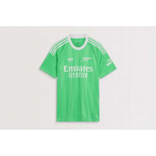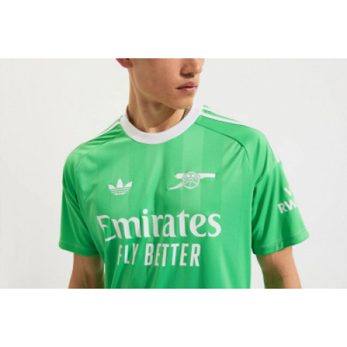 Футболка представлена в свежей зелёной палитре с белыми акцентами на воротнике и трёхполосном оформлении плеч. Минималистичный дизайн подчёркивается тонкими вертикальными узорами по ткани. На груди размещены герб «Арсенала» и логотип спонсора в белом исполнении. Изготовлена из лёгкой спортивной ткани с хорошей вентиляцией, которая обеспечивает комфорт и свободу движений на поле. Прочный крой и качественное нанесение гарантируют долговечность даже при интенсивной эксплуатации. Эта модель подойдёт болельщикам и игрокам, которым важен комфорт и лаконичный стиль, сохраняя верность «Арсеналу».