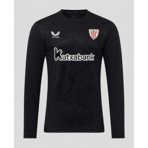 Вратарская форма «Атлетика Бильбао» сезона 2025/26 от Castore выполнена в строгом чёрном цвете с едва заметным геометрическим узором, придающим глубину дизайну. Логотип клуба и спонсора Kutxabank контрастно выделяются на фоне, создавая лаконичный и уверенный образ. Длинные рукава обеспечивают комфорт и защиту, а лёгкий эластичный материал с влагоотводящими свойствами гарантирует свободу движений и оптимальную вентиляцию во время игры.