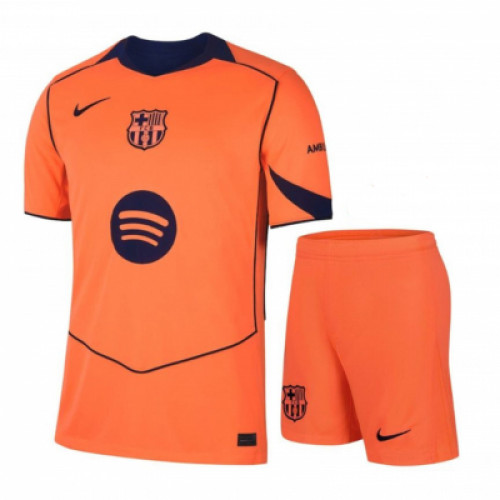 Детская резервная форма FC Barcelona нового сезона - яркий оранжевый комплект с тёмно-синими вставками и контрастной графикой, который сразу выделяется на поле. Цвет сочный и заметный, при этом выглядит аккуратно и современно за счёт тёмных деталей на вороте и рукавах. Отличный вариант, если хочется именно свежий дизайн сезона и максимальный “вау-эффект” в игре и на фото. Комплект подходит для тренировок, матчей и повседневной носки, удобно сидит и не мешает двигаться.
