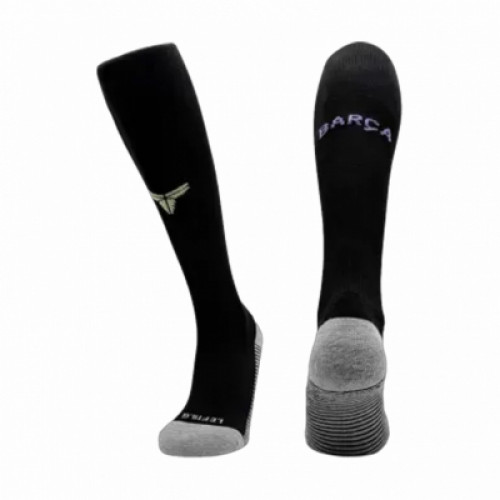 Гостевые гетры FC Barcelona сезона 2025/26: чёрный базовый цвет с надписью BARCA на голени и контрастной серой зоной стопы. Плотная вязка и усиление в носке/пятке дают комфорт и износостойкость, а эластичный верх и поддержка стопы помогают гетрам уверенно держаться во время игры и тренировок.