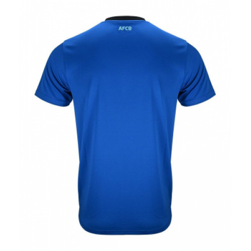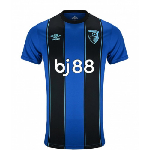 Борнмут футболка гостевая 2025/26 Футболка выполнена в чёрно-синих вертикальных полосах с тонкими голубыми акцентами, что придаёт дизайну свежий и современный вид. На груди расположены клубный герб «Борнмут», логотип Umbro и эмблема спонсора. На спине, под воротником, нанесена надпись AFCB. Модель изготовлена из лёгкой и дышащей спортивной ткани, которая обеспечивает комфорт при активной носке. Эргономичный крой и высокое качество пошива делают футболку удобной как для тренировок, так и для повседневного стиля. Отличный выбор для болельщиков «Борнмута», поддерживающих команду в выездных матчах сезона 2025/26.