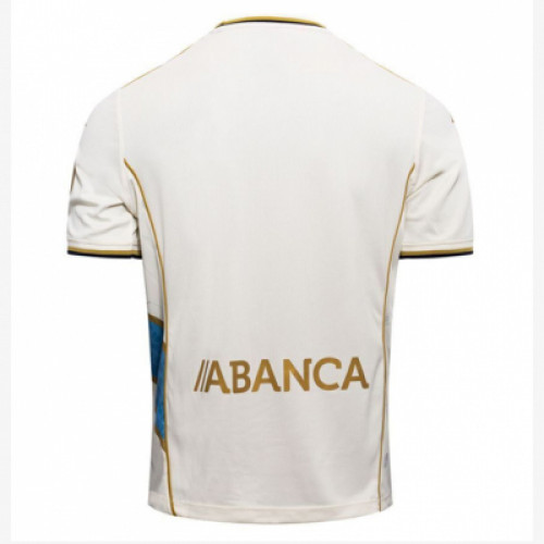 Резервная форма Deportivo La Coruna 2025/26 - светлая молочная джерси с фирменной синей диагональной полосой и золотистой окантовкой, смотрится свежо и очень заметно. По ткани идёт аккуратный принт, который добавляет фактуры, но не перегружает дизайн. Отличный вариант, если хочется необычную светлую форму сезона, которая красиво выглядит на фото и в игре.