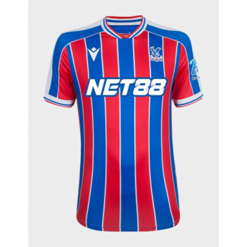 Кристал Пэлас футболка домашняя 2025/26 Домашняя футболка «Кристал Пэлас» сезона 2025/26 выполнена в традиционном красно-синем вертикальном полосатом дизайне, который сразу узнаётся и подчёркивает идентичность клуба. Белые тонкие линии между основными цветами добавляют глубины и делают образ более выразительным. Классический воротник и манжеты с бело-красно-синими элементами создают завершённый и аккуратный вид. Герб «орлов» расположен на груди рядом с логотипом производителя, а центральное место занимает спонсорская надпись NET88. Футболка изготовлена из лёгкой технологичной ткани, обеспечивающей комфорт, вентиляцию и свободу движений во время игры и повседневной носки. Эта модель — символ преданности клубу и стильный выбор для всех болельщиков «Кристал Пэлас» в Английской Премьер-лиге.