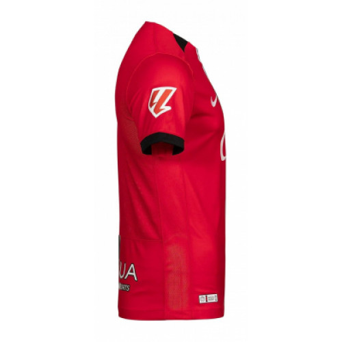 Домашняя форма «Мальорки» сезона 2025/26 от Nike выполнена в традиционном красном цвете с чёрной вертикальной полосой, обрамлённой белыми линиями — символ силы и уверенности клуба. На груди размещён логотип спонсора αGEL by Taica и эмблема команды с короной, отражающей её статус и историю. Лёгкий материал с технологией Dri-FIT обеспечивает отличную вентиляцию и комфорт при любой активности. Современный крой и контрастные детали придают дизайну динамичный и узнаваемый характер.