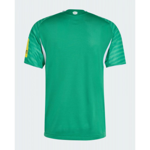 Ньюкасл Юнайтед футболка гостевая 2025/26 Гостевая футболка «Ньюкасла» сезона 2025/26 выполнена в ярком зелёном цвете с плавными градиентными круговыми полосами, создающими эффект динамики и глубины. Белые вставки по бокам и классические три полоски Adidas на плечах добавляют чистоты и контраста в дизайн. Герб клуба и логотип Adidas гармонично вписаны в стиль футболки, а спонсор Sela выделяется на груди белым цветом. Жёлтая нашивка на рукаве придаёт комплекту ещё больше индивидуальности и акцентирует внимание на деталях. Форма изготовлена из технологичного материала, который обеспечивает отличную вентиляцию и комфорт, идеально подходя для игр на выезде. Эта футболка отражает смелый и современный образ клуба, подчеркивая характер «сорок» на поле.