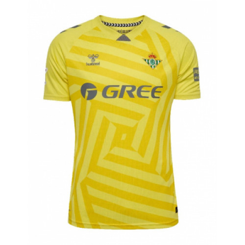 Вратарская форма «Реал Бетис» сезона 2025/26 от Hummel выполнена в насыщенном жёлтом цвете с графическим узором, напоминающим лучи, расходящиеся от центра — символ уверенности и концентрации на поле. Логотип клуба и спонсора GREE выполнены в сером оттенке, создавая современный контраст. Ткань с технологией BeeCool обеспечивает оптимальную вентиляцию и быстрое высыхание, а анатомический крой гарантирует свободу движений при прыжках и реакциях. Форма подчёркивает лидерскую роль вратаря и ярко выделяется на поле.