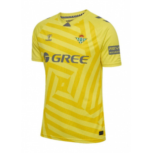 Вратарская форма «Реал Бетис» сезона 2025/26 от Hummel выполнена в насыщенном жёлтом цвете с графическим узором, напоминающим лучи, расходящиеся от центра — символ уверенности и концентрации на поле. Логотип клуба и спонсора GREE выполнены в сером оттенке, создавая современный контраст. Ткань с технологией BeeCool обеспечивает оптимальную вентиляцию и быстрое высыхание, а анатомический крой гарантирует свободу движений при прыжках и реакциях. Форма подчёркивает лидерскую роль вратаря и ярко выделяется на поле.