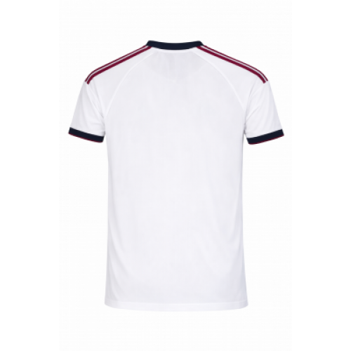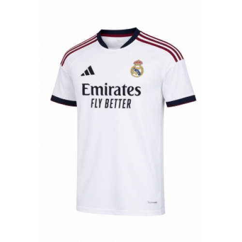 Домашняя форма Real Madrid сезона 2026/27 - классическая белая джерси с бордовыми полосами на плечах и тёмно-синими акцентами на вороте и манжетах. Дизайн выглядит чисто и статусно, а контрастные детали добавляют свежести без лишней графики. Отличный вариант для матчей, тренировок и повседневного спортивного стиля, хорошо смотрится на фото и вживую.