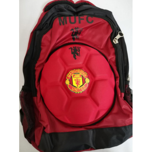 Красный портфель с чёрными вставками и яркой эмблемой футбольного клуба Манчестер Юнайтед. Можно носить в школу или на тренировки. Купить с доставкой по России.