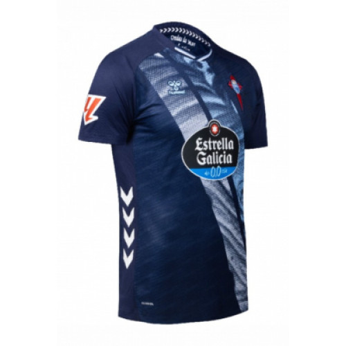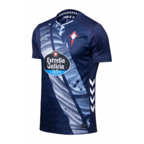 Гостевая форма «Сельты» сезона 2025/26 от Hummel выполнена в глубоких оттенках тёмно-синего, символизирующих морскую стихию Атлантики и гавань Виго. Центральный диагональный рисунок создаёт эффект движения волн и перекликается с надписью на внутренней части воротника — Ondas do Mar de Vigo. Эмблема клуба и логотип Estrella Galicia 0,0 выделяются на фоне насыщённой текстуры, подчёркивая фирменный стиль «небесных». Ткань с технологией BeeCool обеспечивает оптимальную вентиляцию и комфорт в любых условиях. Этот дизайн объединяет традиции Галисии и современный спортивный минимализм — для команды, которая всегда верна своему побережью.
