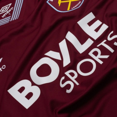 Новая домашняя форма «Вест Хэм Юнайтед» на сезон 2025-2025 выполнена в бордовом цвете с полосатыми бордово-голубыми манжетам и воротником. Дополняют образ голубые вставки по бокам. Погрузитесь в мир футбольного энтузиазма и покажите свою любовь к футболу с нашей стильной мужской футболкой, которая создана для настоящих фанатов! Если ты — преданный поклонник Вест Хэма то эта футбольная футболка станет отличным дополнением к твоему гардеробу. Яркий дизайн и высококачественные материалы делают её идеальным выбором как для матчей, так и для повседневной носки.