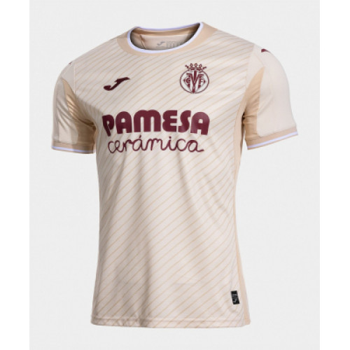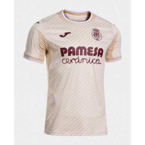 Гостевая форма «Вильярреала» сезона 2025/26 от Joma выполнена в элегантной палитре бежево-золотых тонов с диагональными линиями и бордовыми акцентами. Минималистичный дизайн подчёркивает утончённый стиль клуба, а логотип спонсора Pamesa Cerámica гармонично вписывается в общий облик. Ткань с технологией Micro-Mesh System обеспечивает идеальную циркуляцию воздуха и комфорт при любой активности. Лёгкий материал и анатомический крой делают футболку удобной как для игры, так и для повседневного ношения.